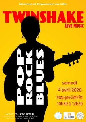 Le CIL Godillot a invité le Groupe TwinShake, qui interprètera de célèbres morceaux de Pop, de Rock et de variété, le samedi 4 avril au kiosque de la place Gabriel Péri de 10h30 à 12h30 - Concert gratuit